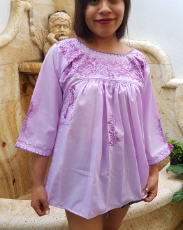Blusa cuadrada de tela popelina, con bordado solo en el cuello en la parte de enfrente.
